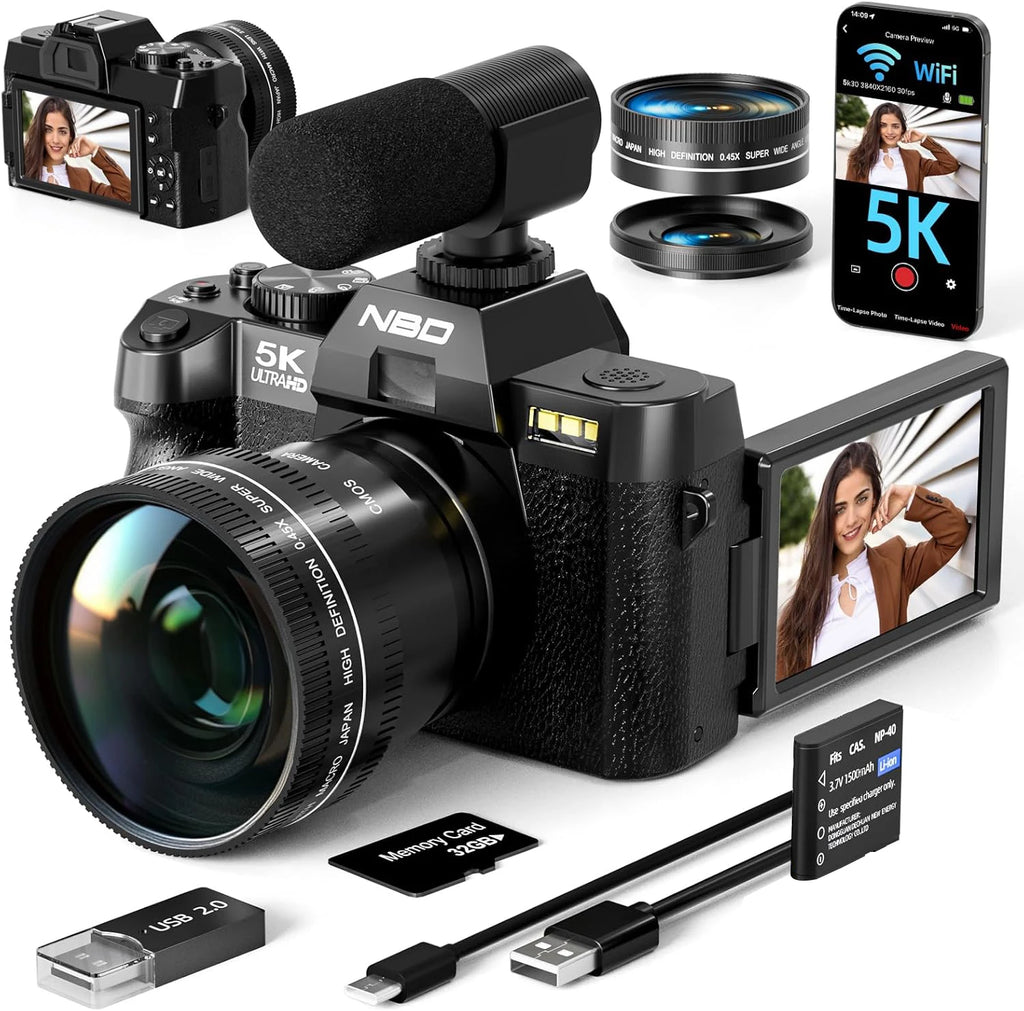 Product Features: 【5K Digital Camera with 180° Flip Screen】The NBD digital camera redefines quality with its ability to capture vibrant 48MP photos...