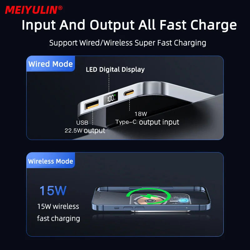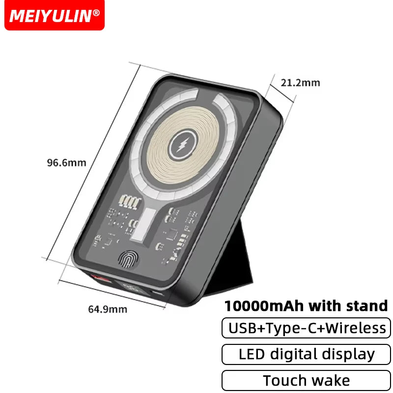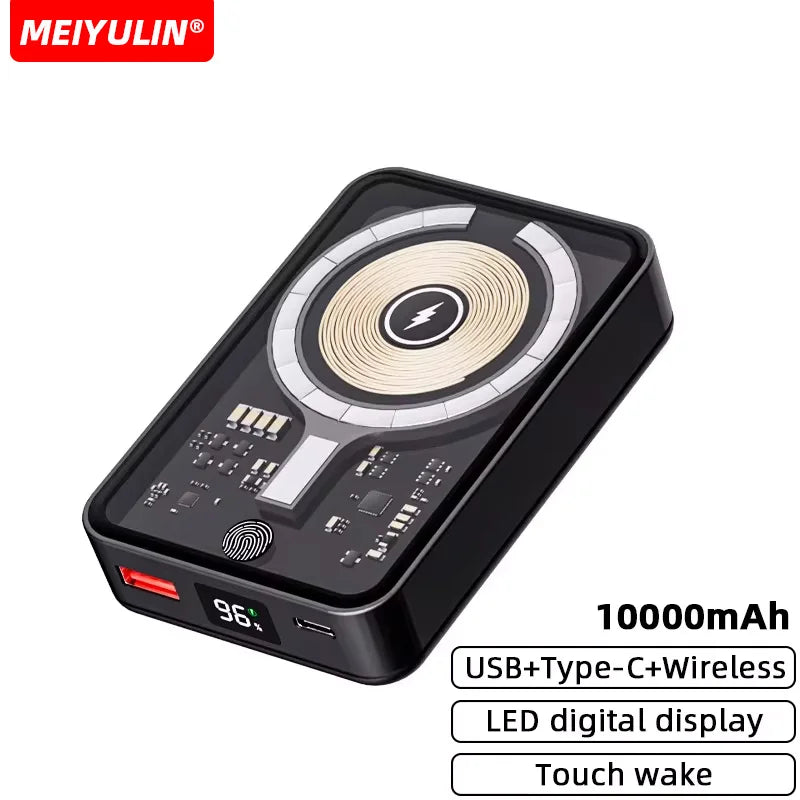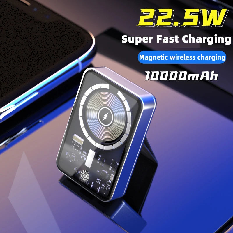 ๐ What is it โ Experience the convenience of our 10000mAh Magnetic Wireless Power Bank with a sleek transparent design. This fast charger is perfect for keeping your devices powered on the go, whether you have an iPhone 16 or Samsung.