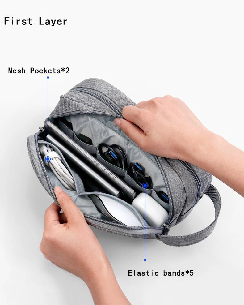 🌟 What is it - Meet the must-have Dual Portable Laptop Accessories Organizer Bag, designed to keep all your essential electronic accessories in one convenient place. This multifunctional storage solution features elastic bands and mesh pockets for optimal organization on the go!