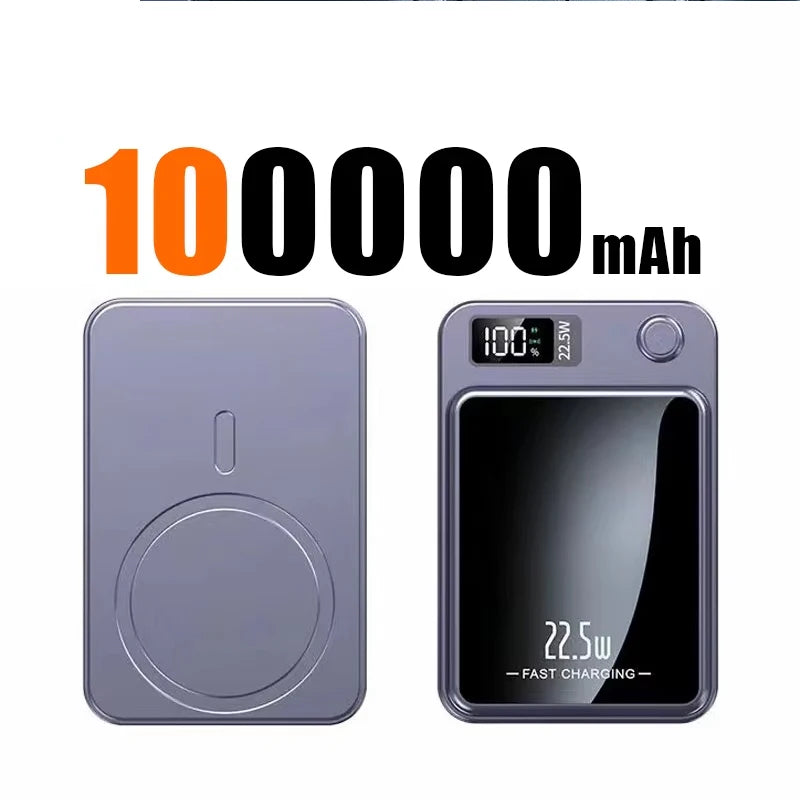100000mAh Wireless Magnetic Power Bank Super Fast Charging Ultra Capacity Digital External Battery Power Bank For Iphone