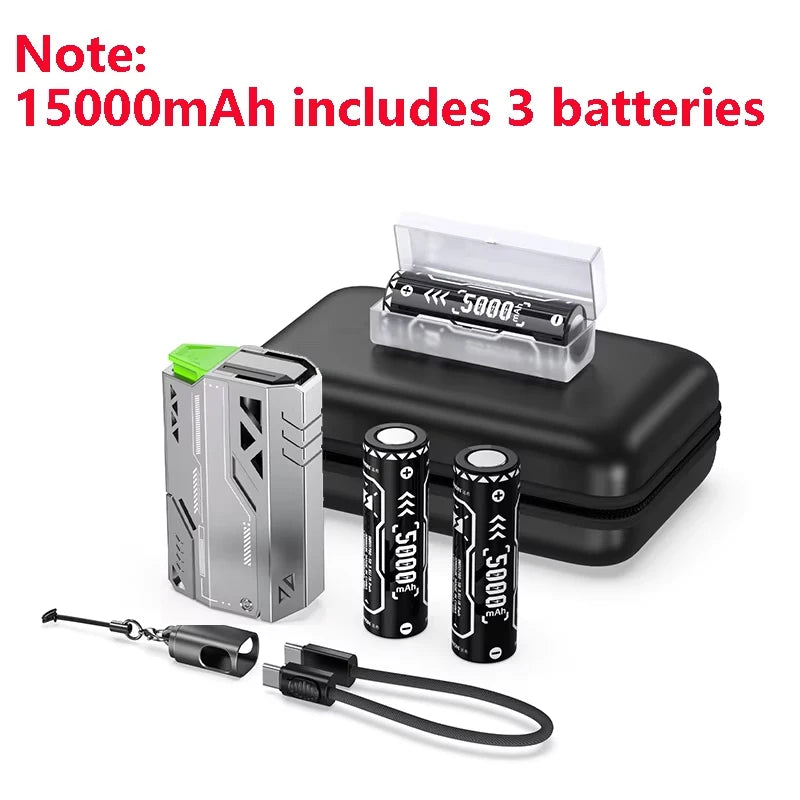 Mix and match 10000mAh/15000mAh/2000mAh battery modules.