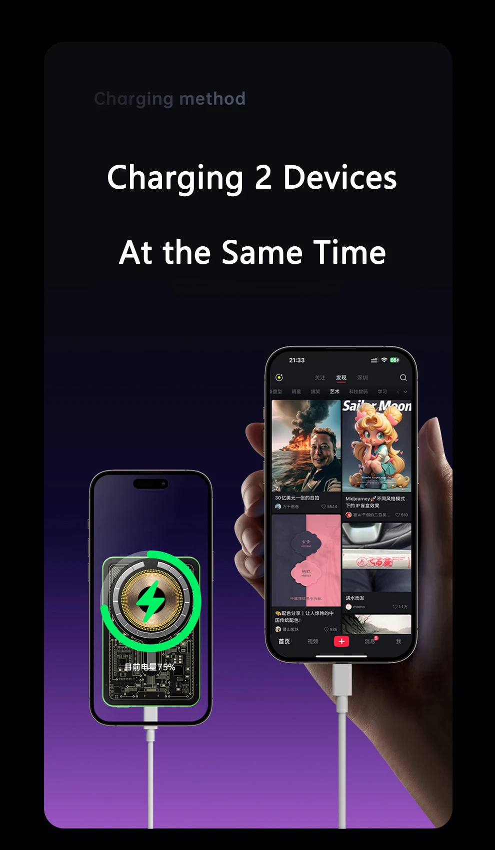 Support PD20W Two-Way Fast Charging