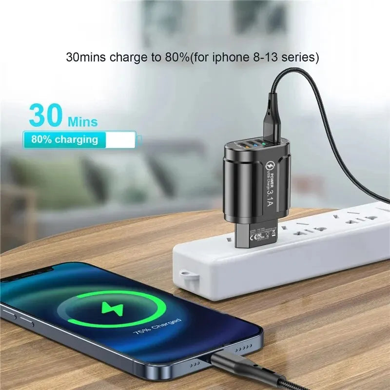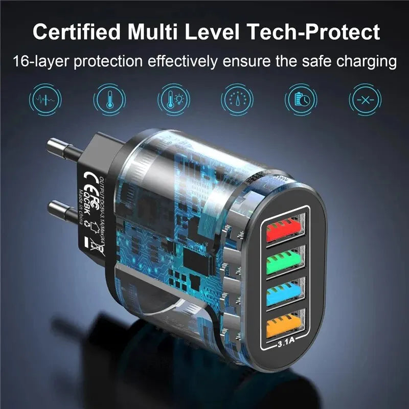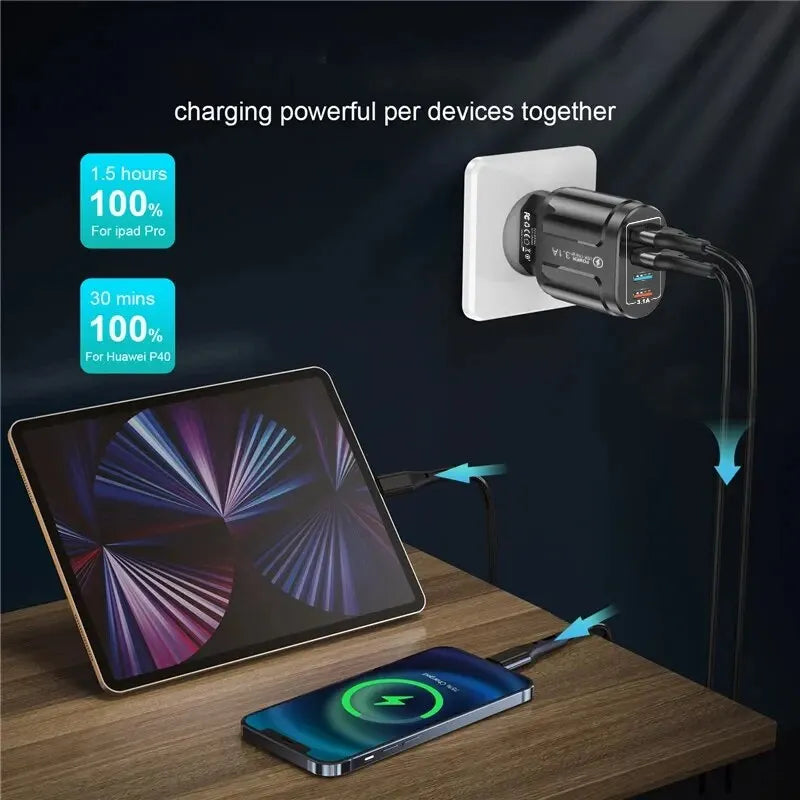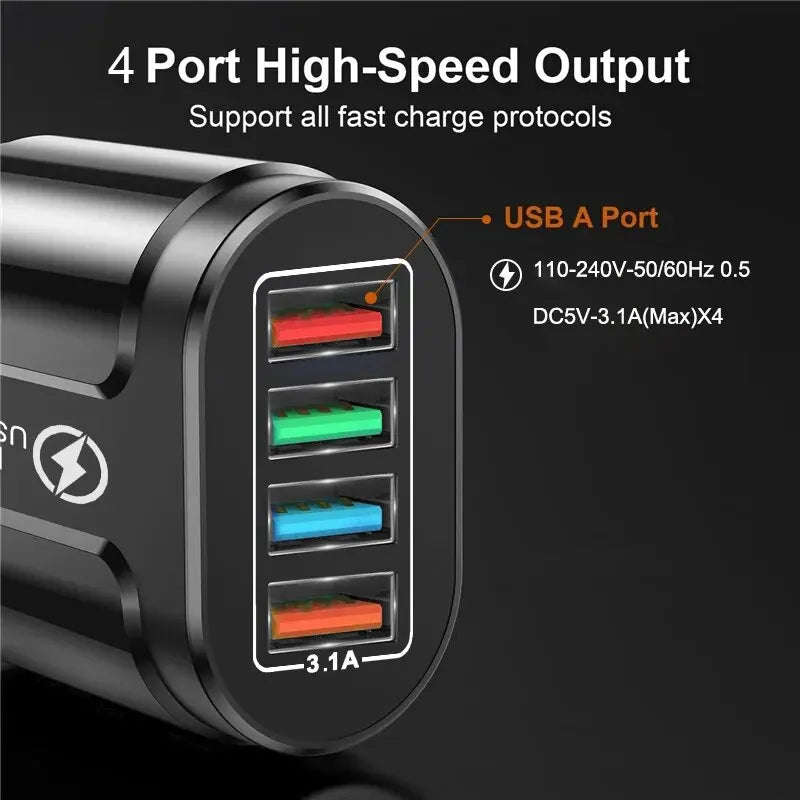 2. 4 USB ports charging 4 devices at the same time.
