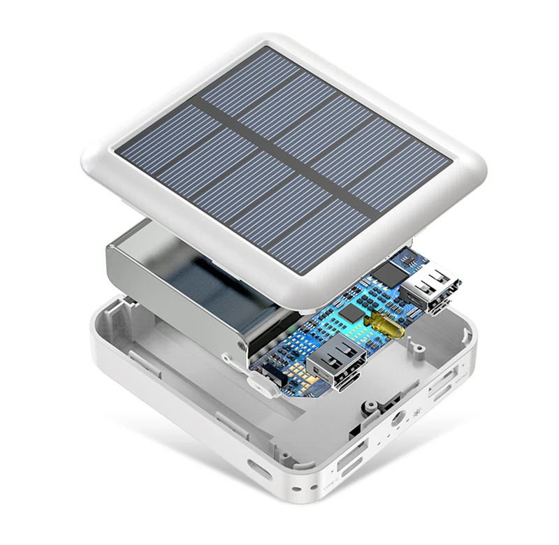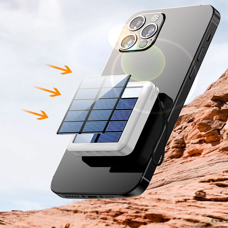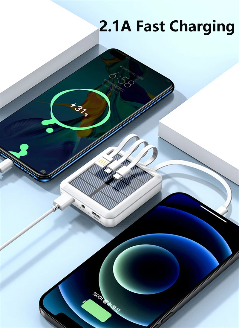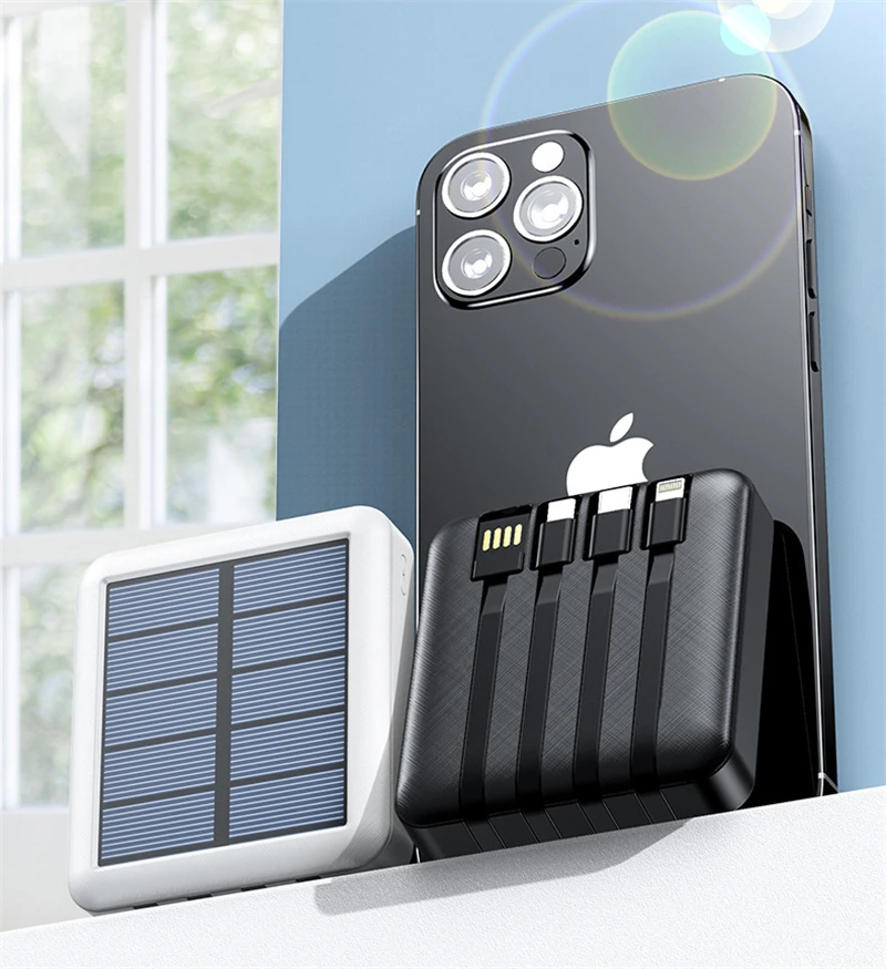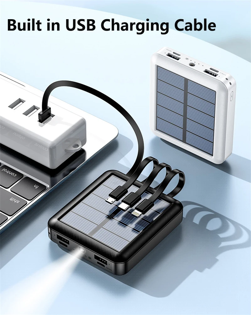 20000mAh Mini Solar Power Bank with 4 Cable Light Portable External Battery Charger for iPhone 15 Huawei Samsung Xiaomi Powerbank
