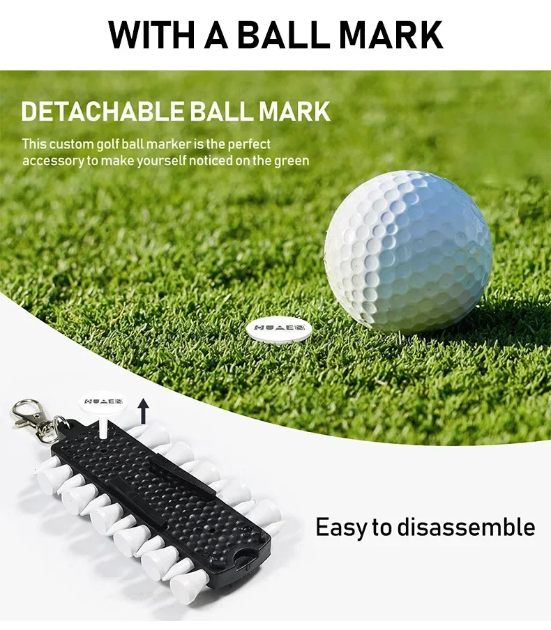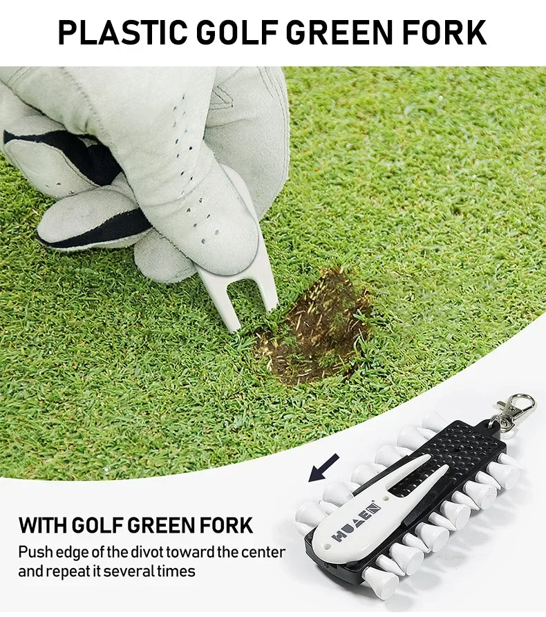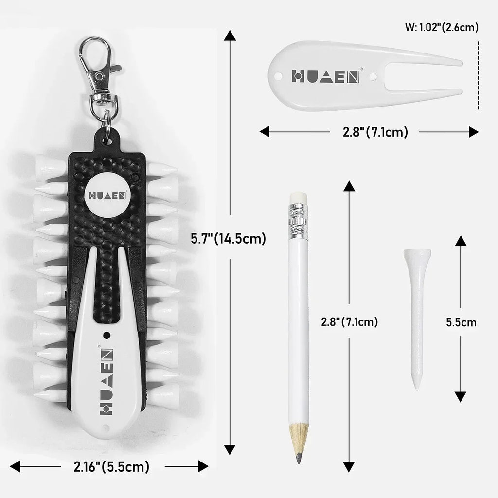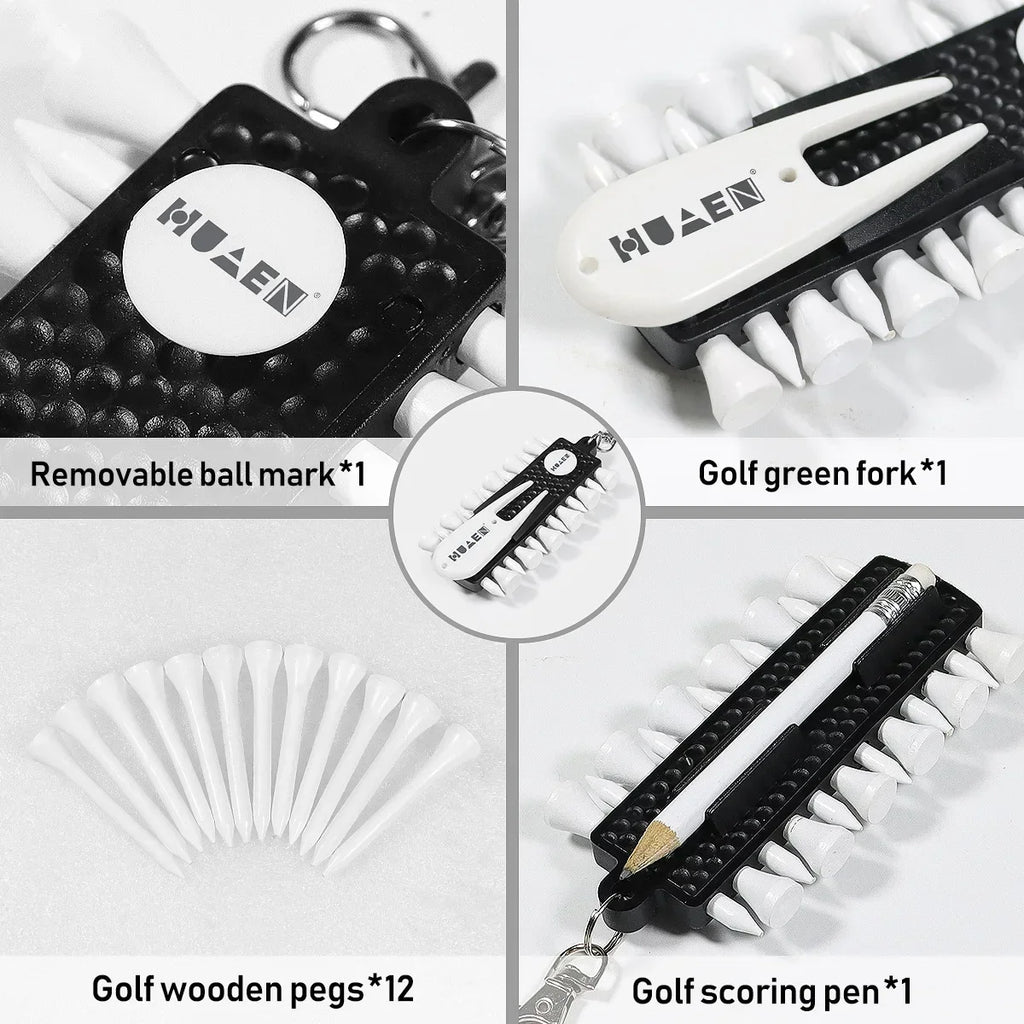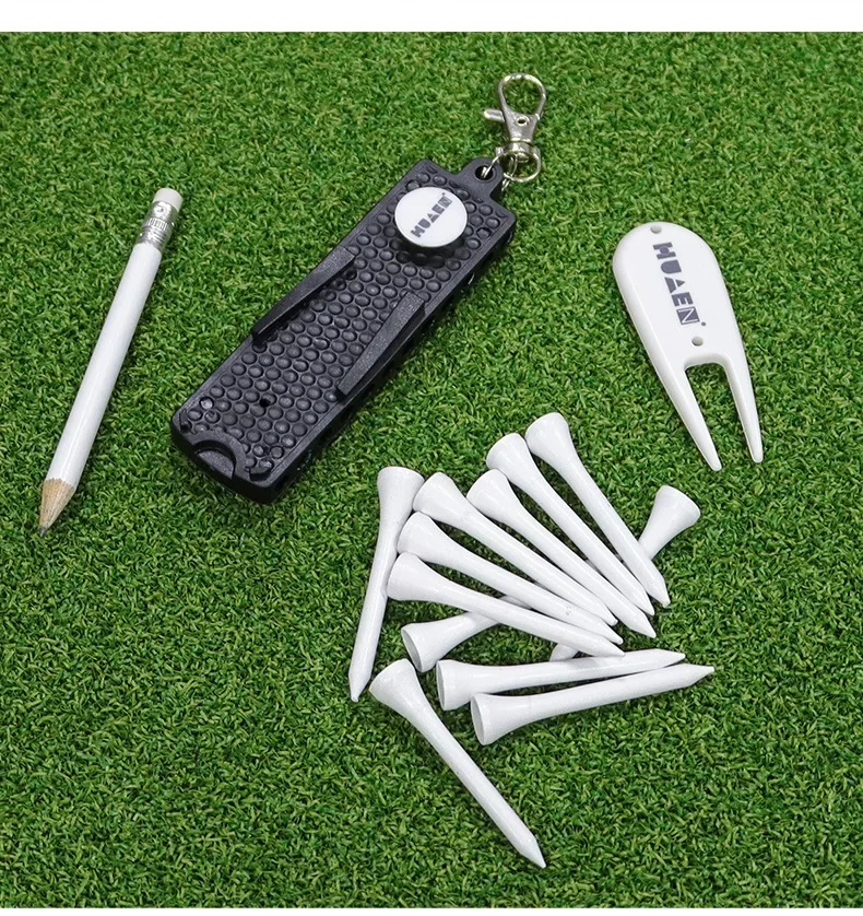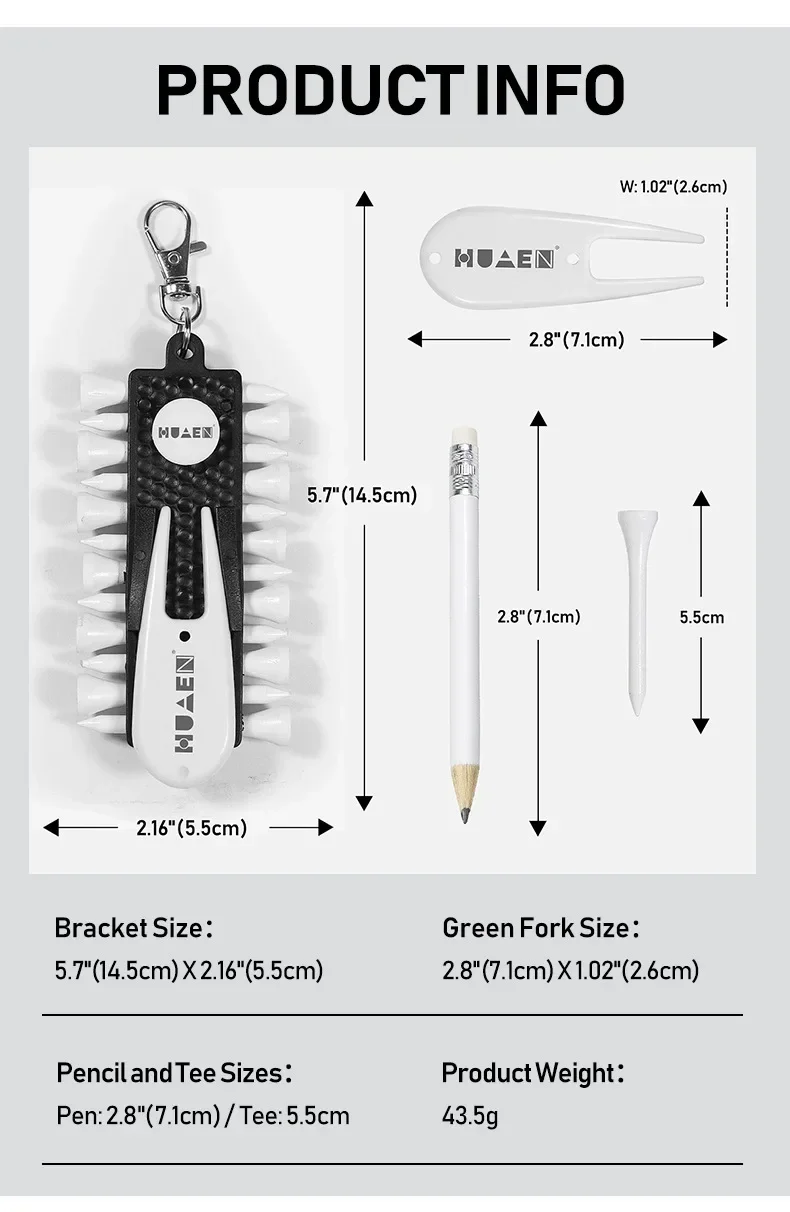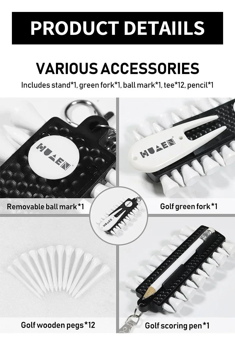 PGM Golf Tees Rack with 12pcs Tees Green Fork and Pencil Portable Golf Accessory Storage Device TC001